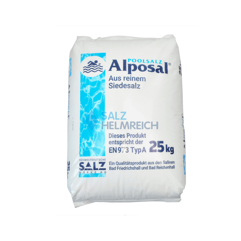 Alposal POOLSALZ aus den bayerischen Alpen, reinstes Siedesalz 99,9%, entspricht der DIN EN 973 Typ A und ist auch für Schwimmbäder, Badewannen, Salzanlagen geeignet. Im Alposal Poolsalz sind Trennmittel enthalten. Dadurch kommt es zu keinerlei Verklumpungen.