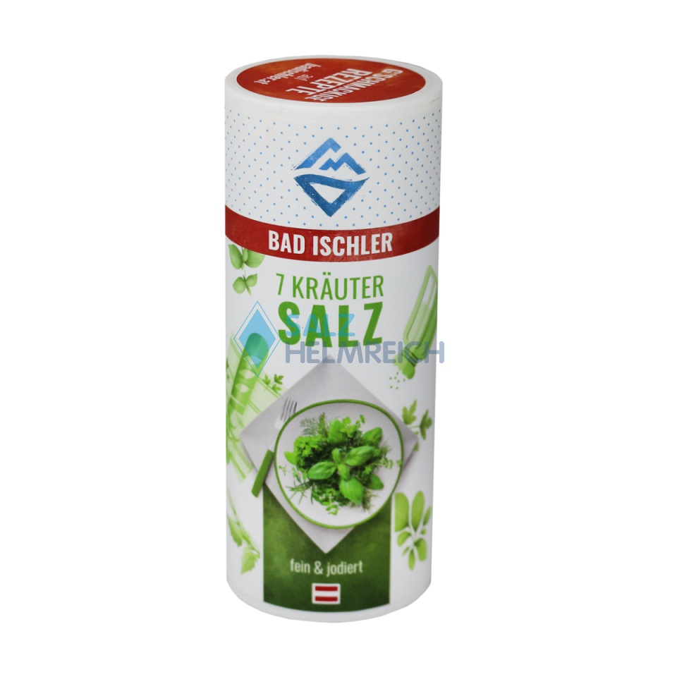 Bad Ischler 7 Kräuter Gewürzsalz, der allseits beliebte Allrouder aus den österreichischen Alpen. Universalgewürzsalz zum Verfeinern & Würzen von Salaten, Gemüse, Suppen, Saucen und vieles mehr.