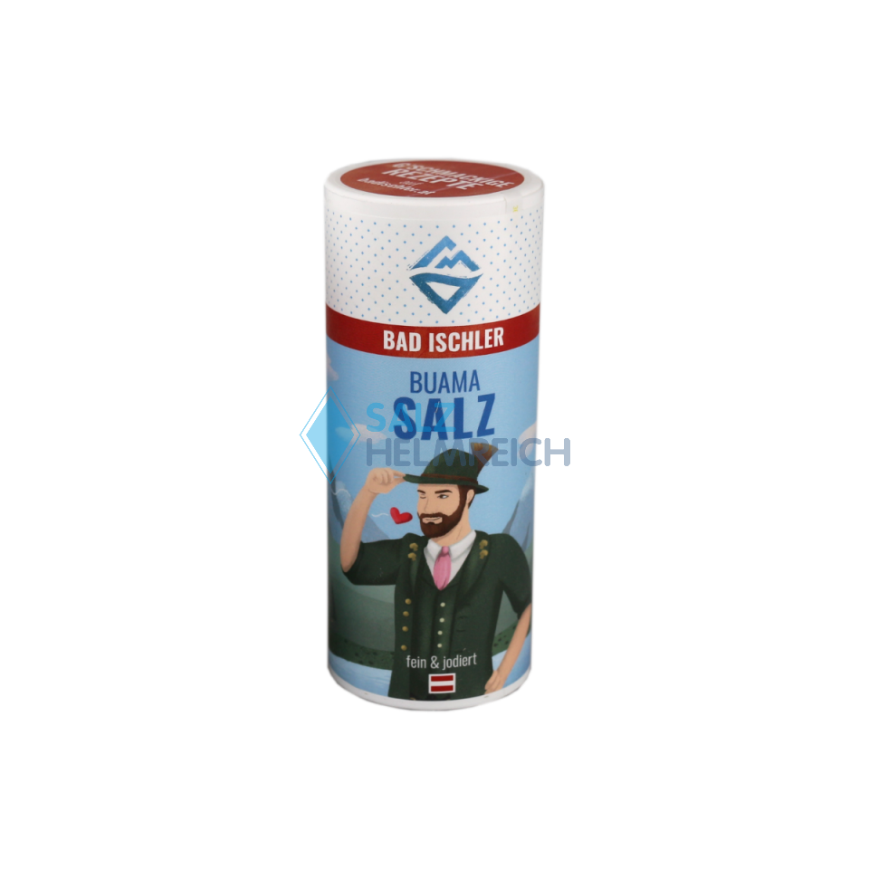 Das feinkörnige und jodierte BAD ISCHLER Kristallsalz in der 200g Salzkammergut Buama Trachten Edition ist das ideale Salz für jede Küche. Es eignet sich hervorragend zum feinen Würzen und lässt sich Dank des handlichen Streuers praktisch und unkompliziert dosieren. Das Siedesalz stammt zu 100 % aus Österreich und wird auch in Österreich produziert.