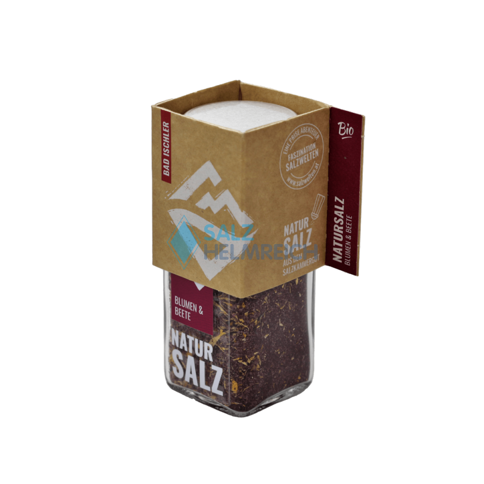 Unvergessliche BAD ISCHLER Natursalz-Mischung mit Roter Beete und Blüten aus kontrolliert biologischem Anbau, die den Wow-Effekt auf Salaten, Reis, Couscous, Aufstrichen und vielem mehr, zaubert.