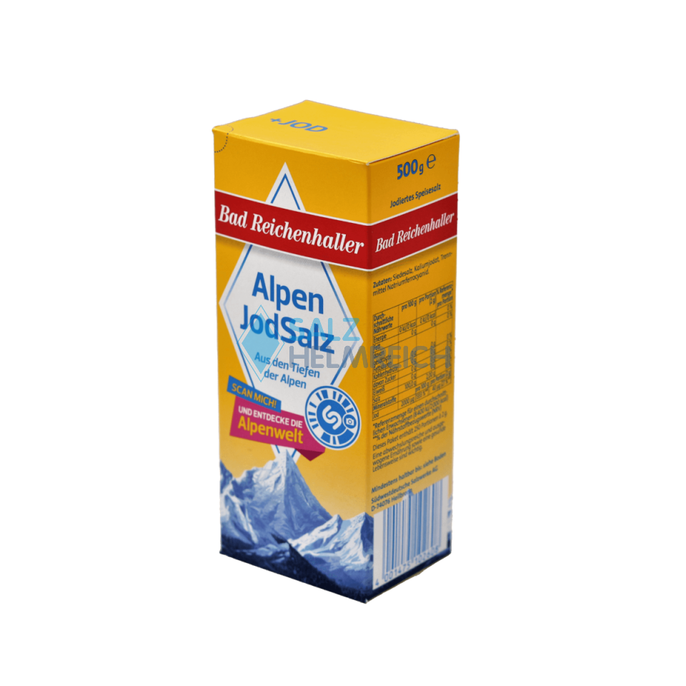 Alpen-Jodsalz fein mit Trennmittel und Jod versehen. Zum Würzen und Verfeinern von Lebensmittelprodukten aller Art. Alpensole ist der natürliche Ursprung aller Bad Reichenhaller-Produkte.