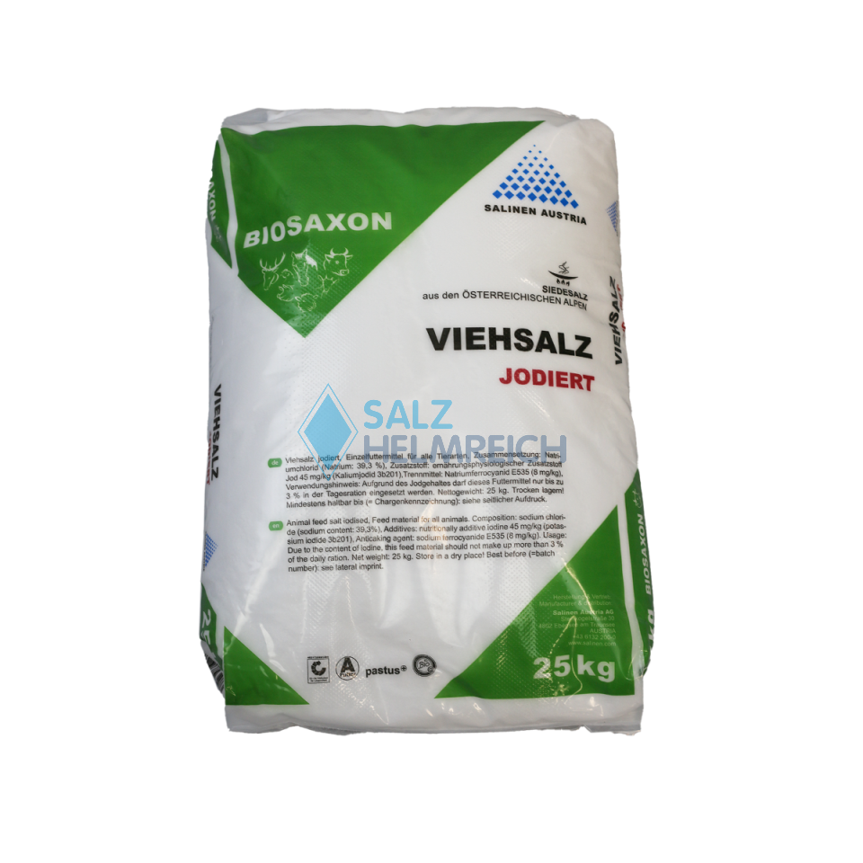 Das Biosaxon Viehsalz jodiert ist ein Einzelfuttermittel, welches sich ideal für eine bedarfsgerechte Ernährung aller Tierarten eignet. Es ist die perfekte Ergänzung zur Futtergrundlage: leicht zu dosieren und in hoher, konstanter Qualität.