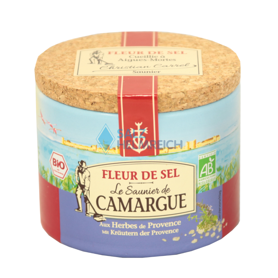 Fleur De Sel Gewürzmischung mit Kräutern der Provence 125 Gramm Dose aus der Camargue mit Korkdeckel