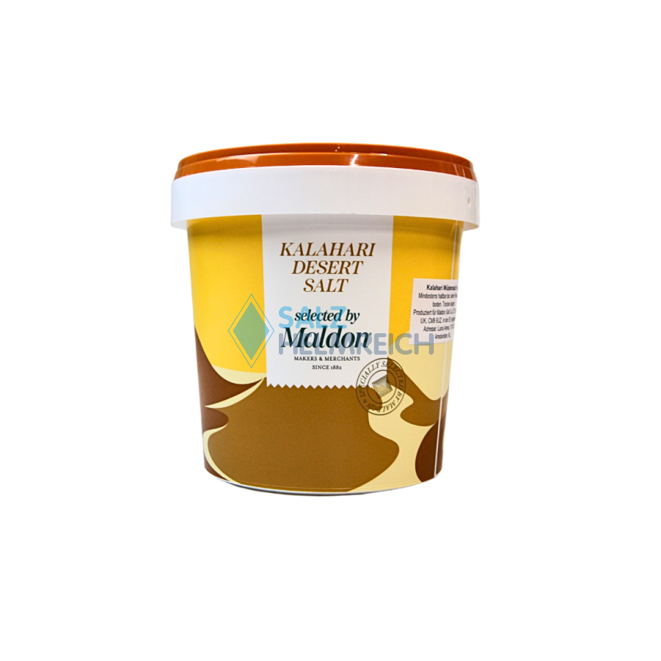 Das Maldon Kalahari Desert Salt im 1 kg Eimer ist ein natürliches Wüstensalz aus Afrika. Dieses von Natur aus grobe Salz wurde von erfahrenen Maldon Salt Experten ausgewählt und in der Kalahari Wüste abgebaut. Es eignet sich perfekt für eine vielzahl von Gerichten und ist ideal, um den Geschmack bei Fleisch- und Fischgerichten zu verstärken. In allen Haushalten wissen großartige Köche seit jeher, wie sie das Beste aus ihren authentischen Aromen rausholen. Sie wissen um den Wert eines guten Salzes.