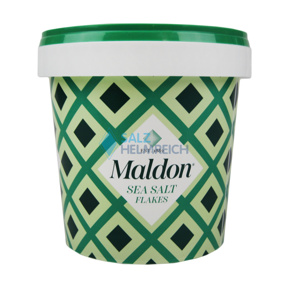 Die berühmten Maldon Sea Salt Meersalzflocken im 570 g Eimer. Die weichen, pyramidenförmigen Knusperflocken haben eine frische Intensität, die die perfekte Balance natürlicher Mineralien enthält und Gerichte mit abgerundeter Tiefe und Geschmack kreieren.