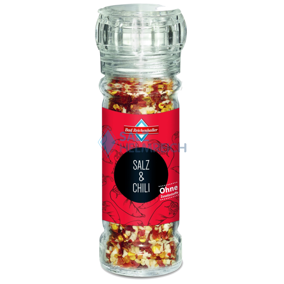 - Alpensalz aus reiner Alpensole mit Chiliflocken verfeinert