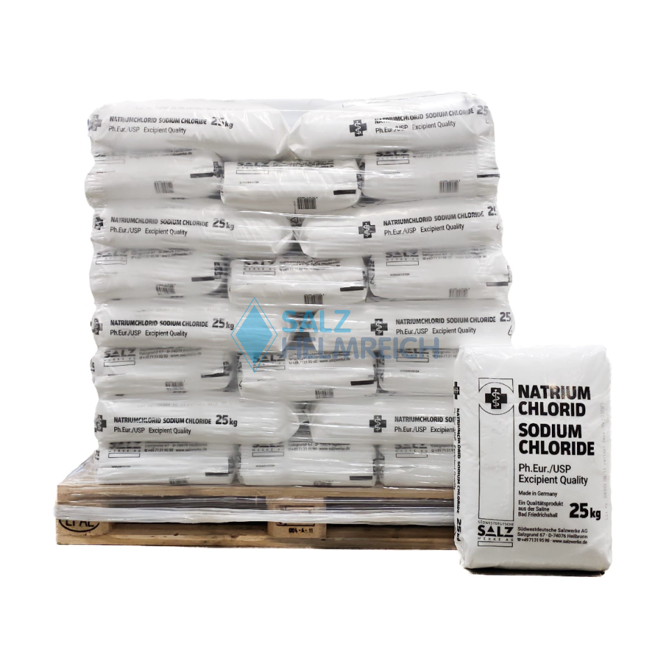 1000kg Natriumchlorid Sodiumchlorid Pharma Ph.Eur./USP Excipient Quality Made in Germany 40 x 25 kg Sack auf Palette