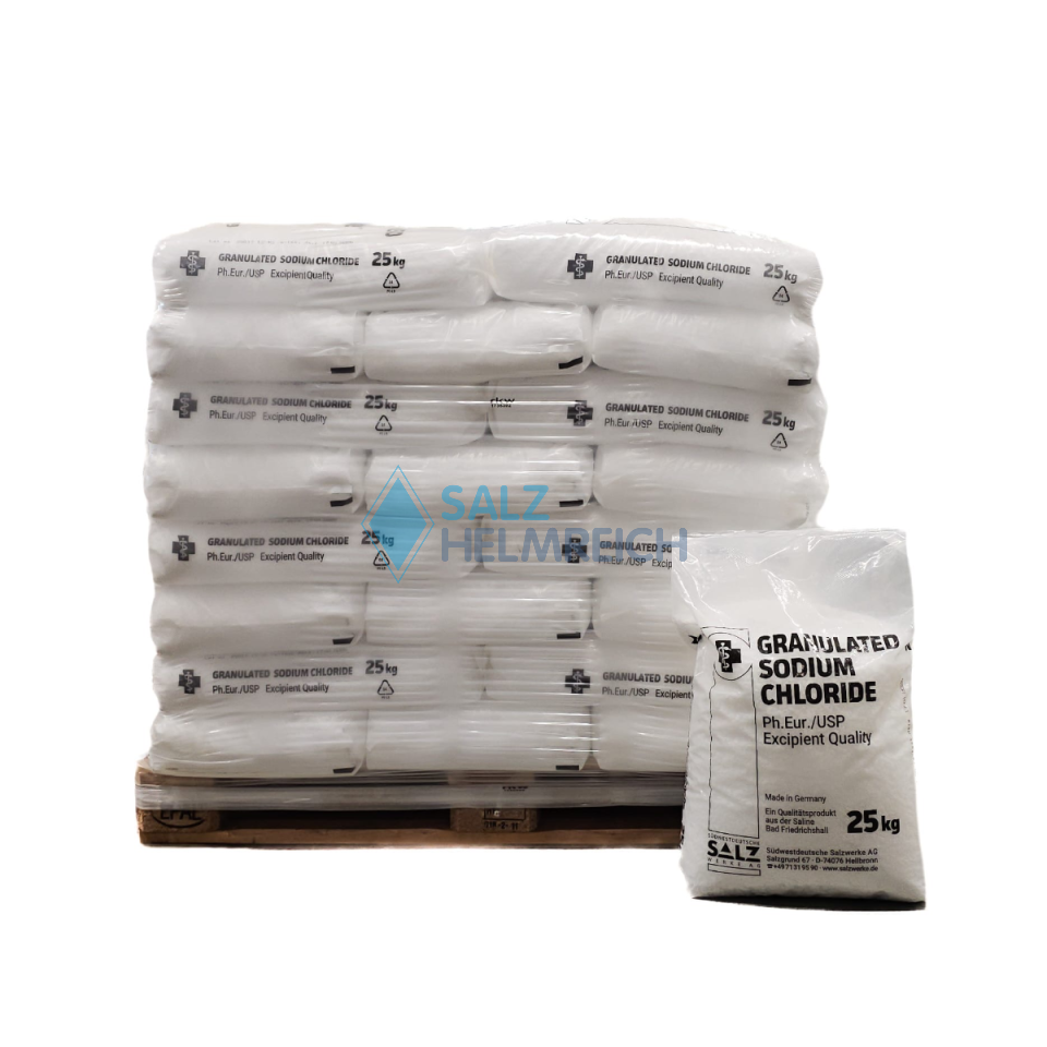 1000 kg Natriumchlorid Sodiumchlorid granuliert Ph.Eur./USP Excipient Quality 40 x 25 kg Sack auf Palette