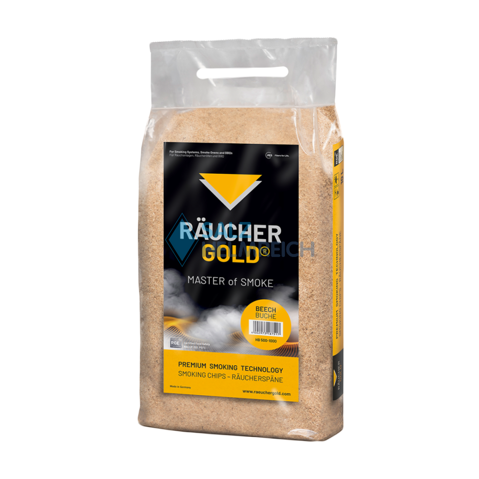 RÄUCHERGOLD® HB 500-1000 Räucherspäne aus Buchenholz sind durch ihre ausgewogene Rauchnote perfekt für das Räuchern von allen Lebensmittel geeignet. Mit einer extra feinen Körnung von 0,5 - 1 mm werden sie als Glimmrauchmaterial für Schütt-, Kartuschen- und Kaltrauchsysteme eingesetzt.