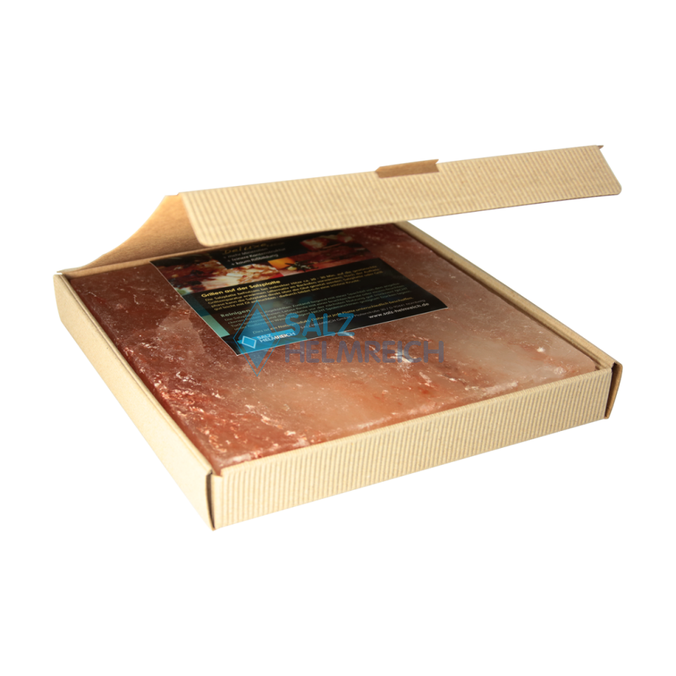Die Grillplatte ist das perfekte Grillerlebnis - Das Geheimnis der Genussgriller. - Grillen auf der Steinsalzplatte. 1 Salzplatte (Steinsalzplatte aus Pakistan, nahe Himalaya) im fertigen GESCHENKKARTON 20cm x 20cm x2,5cm - Die Salzplatten können mehrmals verwendet werden. Einfach 20 Minuten langsam auf dem Grill erhitzen, erst neben der Glut und dann direkt über der Glut. - Grillen - Reinigen: Platte auskühlen lassen Grillreste abschaben, nicht unter fließendem Wasser reinigen. Da es sich bei unseren Salzplatten um ein reines Naturprodukt handelt, ist jede einzelne Platte ein Unikat.